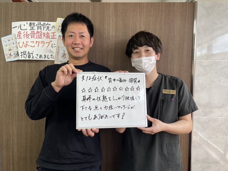 担当の先生も優しい人ですし、施術も気持ちが良いし毎回体の困っていることを相談すると的確に教えてくれる知識も持っているので安心です!現在では息子と一緒に通っていて体のメンテナンスをしてもらっています。猫背でお悩みの方はぜひ一心整骨院さんに行ってみてください!私のように猫背が改善される方が1人でも多くなるようにオススメさせて頂きます。
